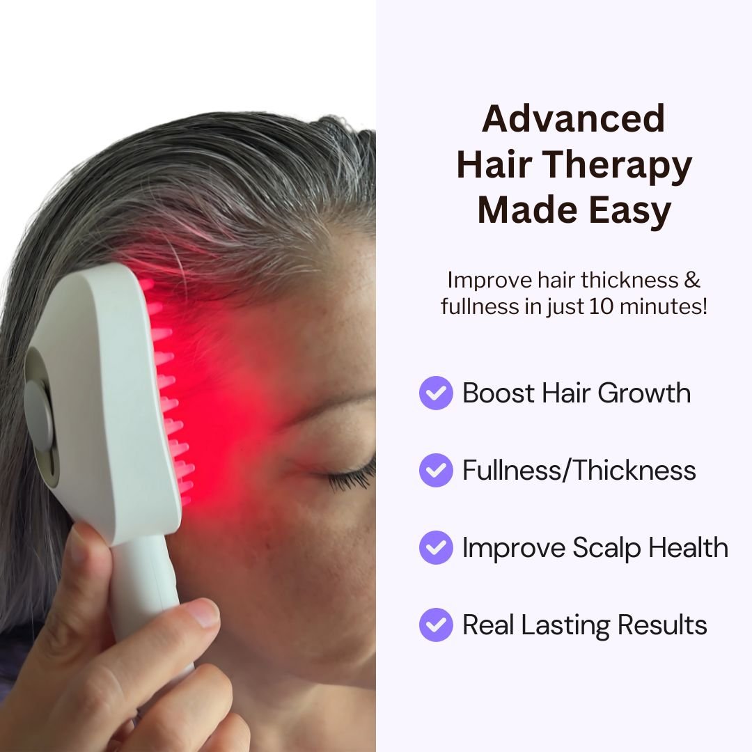 TheraBrush works by targeting the scalp: This is where hair growth starts. It uses 4 clinically studied therapies to stimulate and rejuvenate the scalp and promote hair growth.